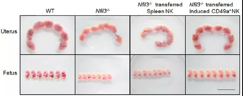 图5 过继回输体外诱导的CD49a+Eomes+ NK细胞,可逆转小鼠胎儿生长受损情况